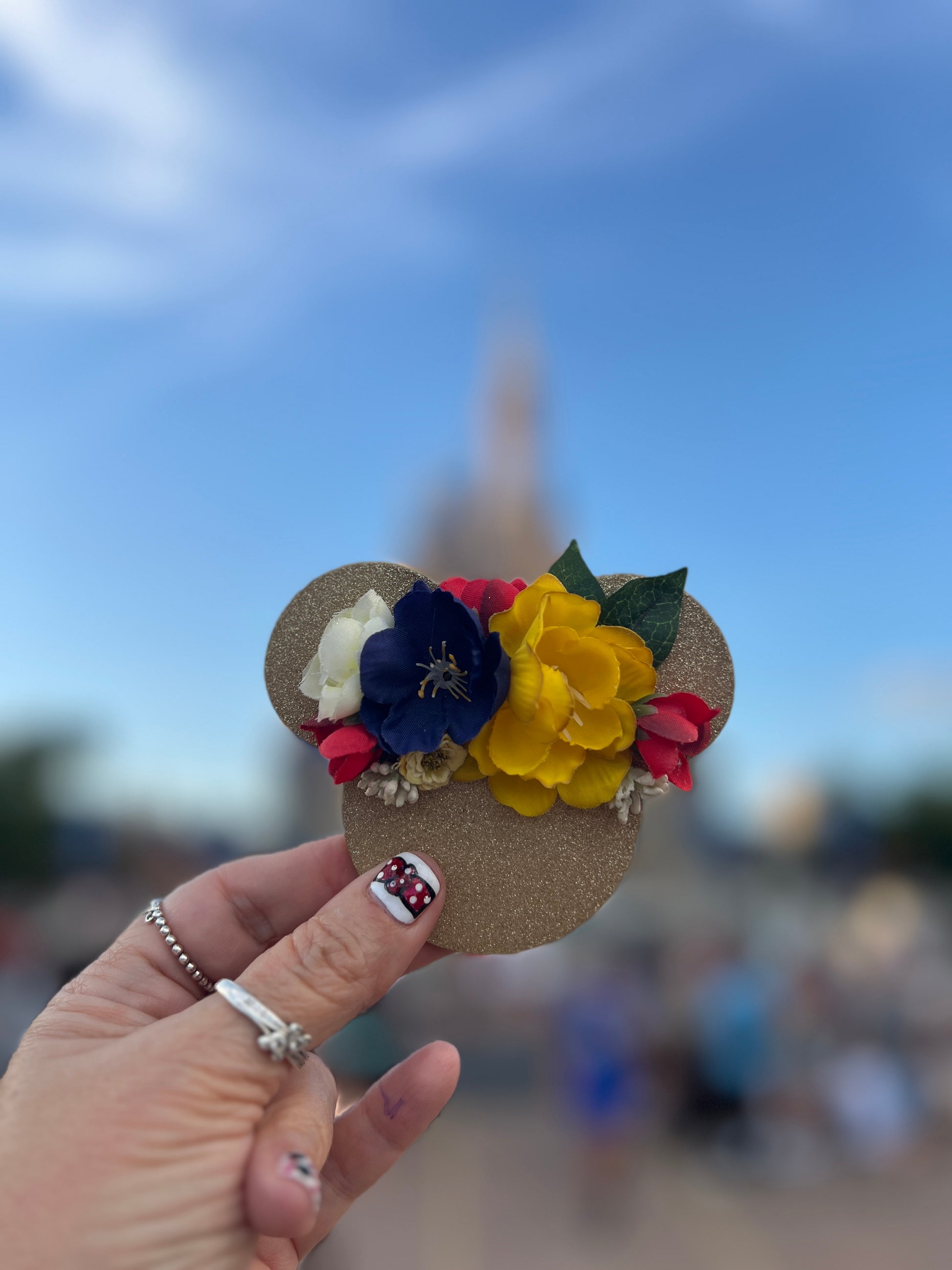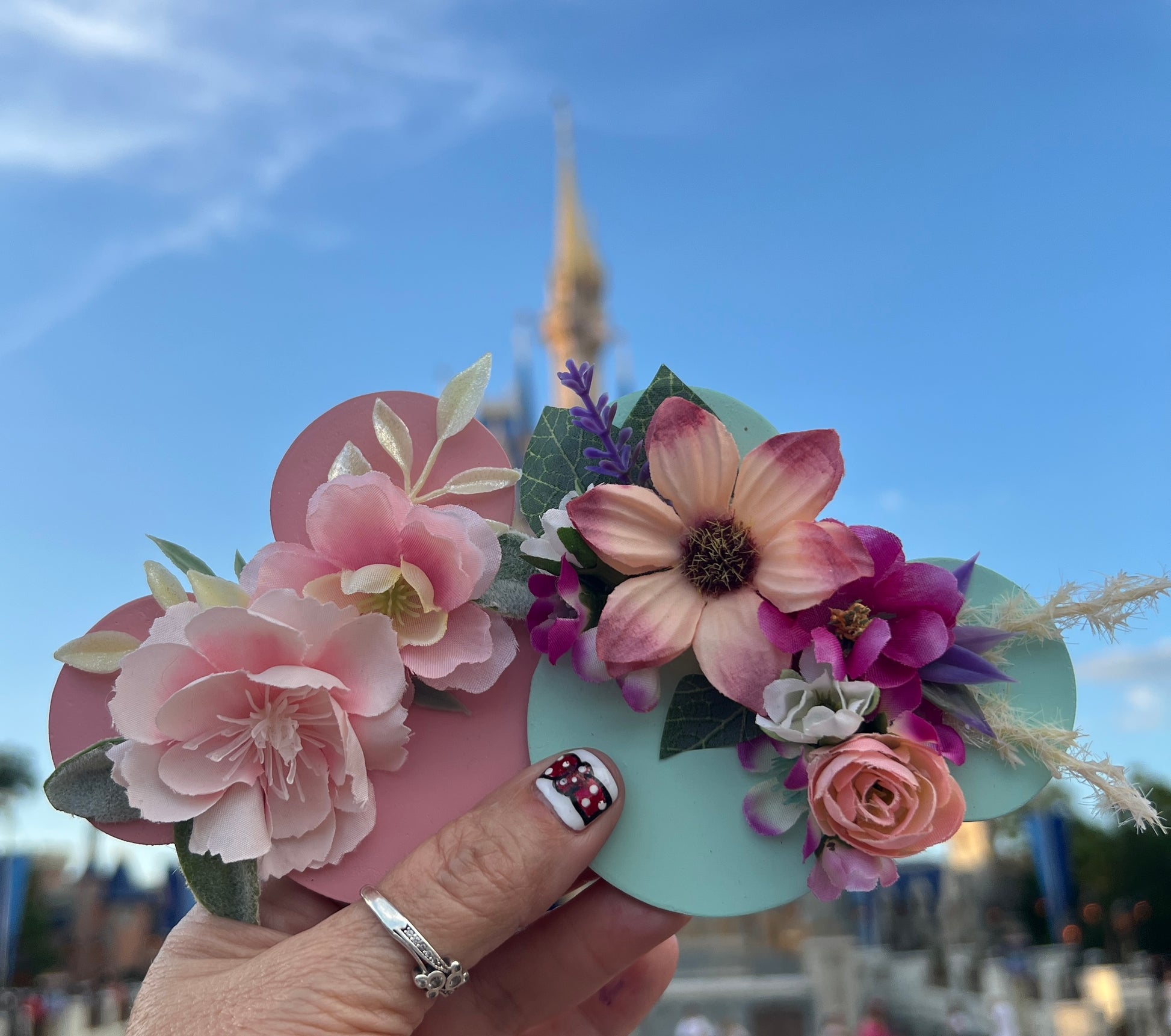 Adorable refrigerator magnets. Mickey heads with flowers. Choose colors of your flowers and your Mickey head.