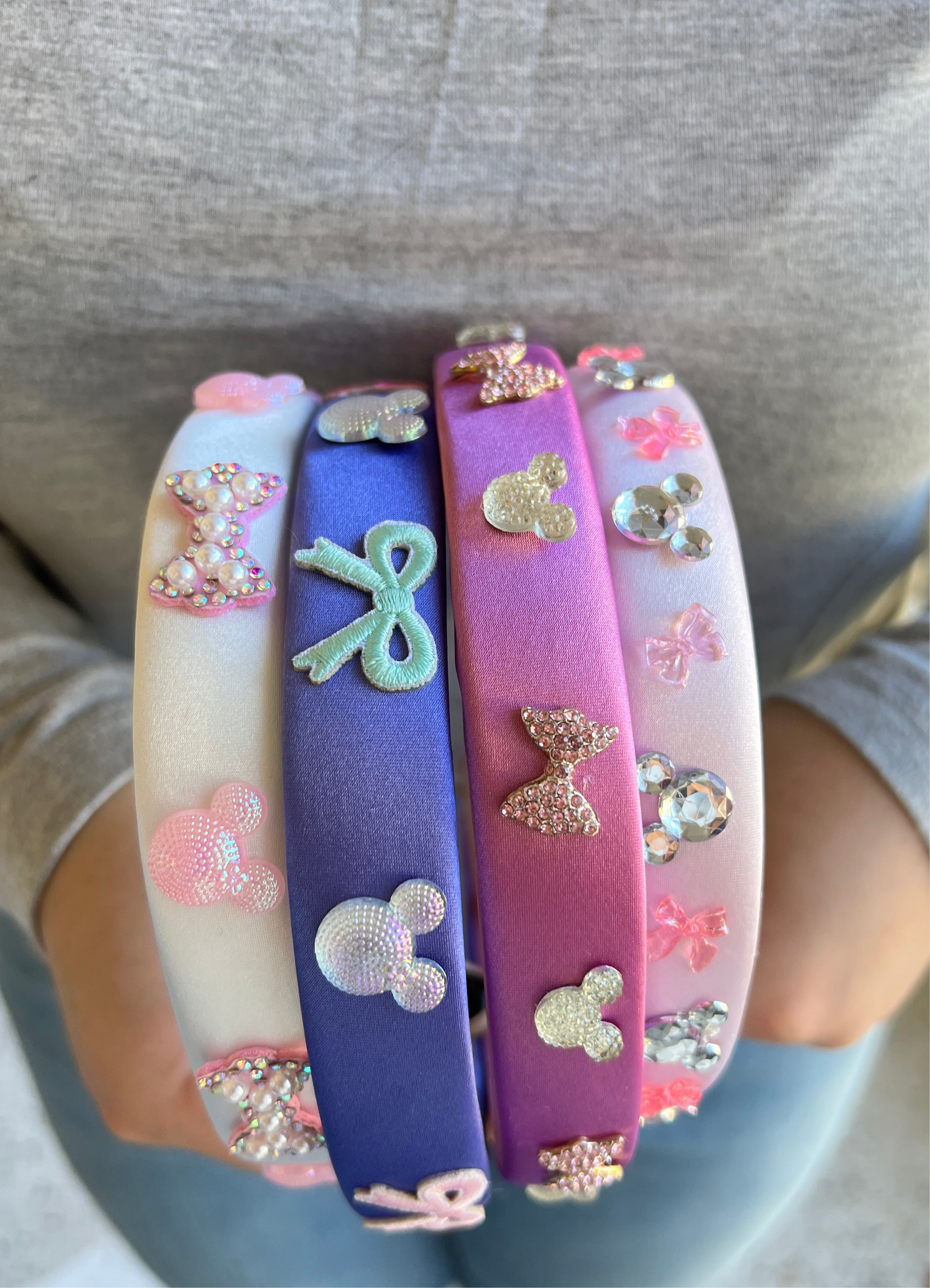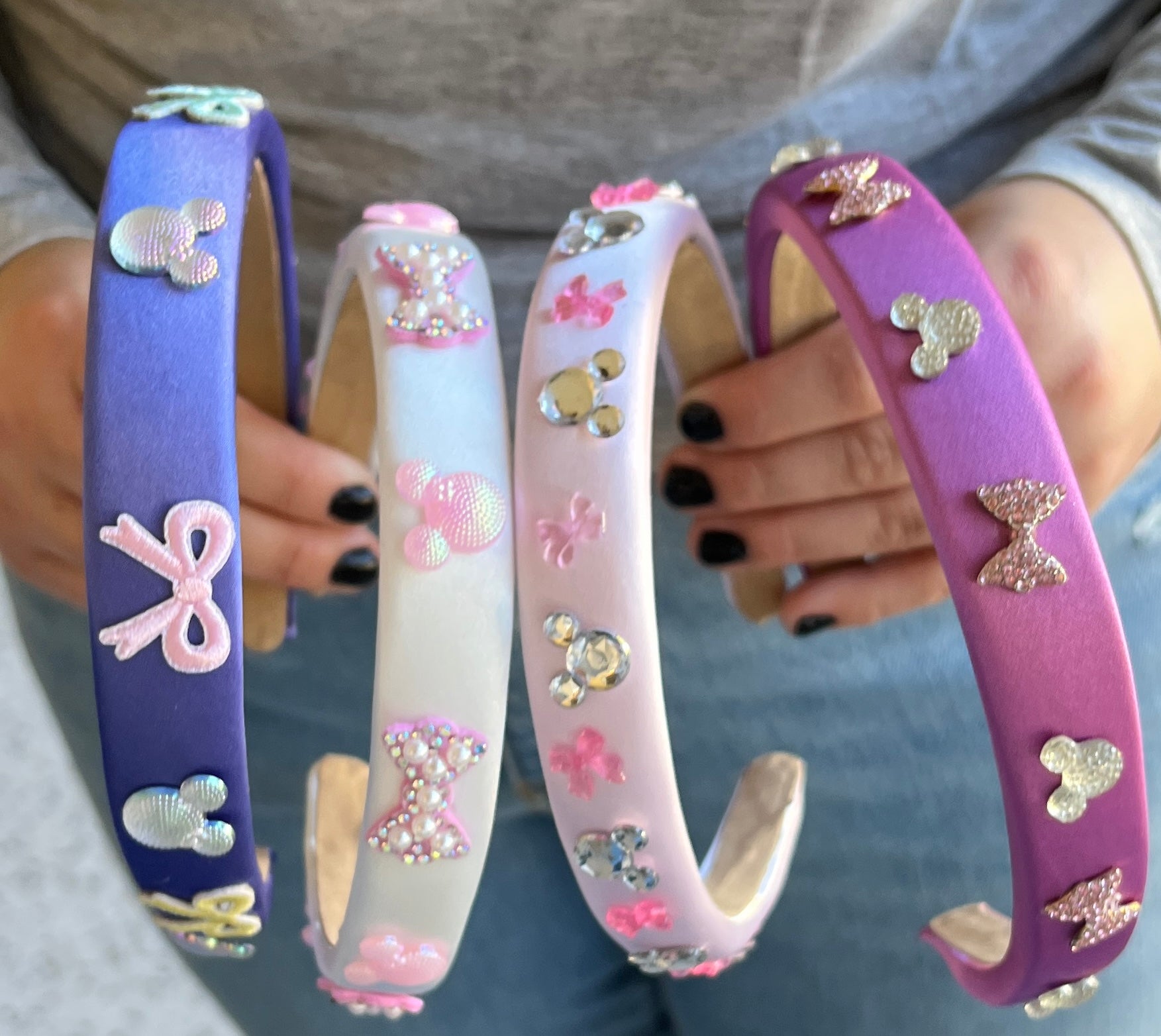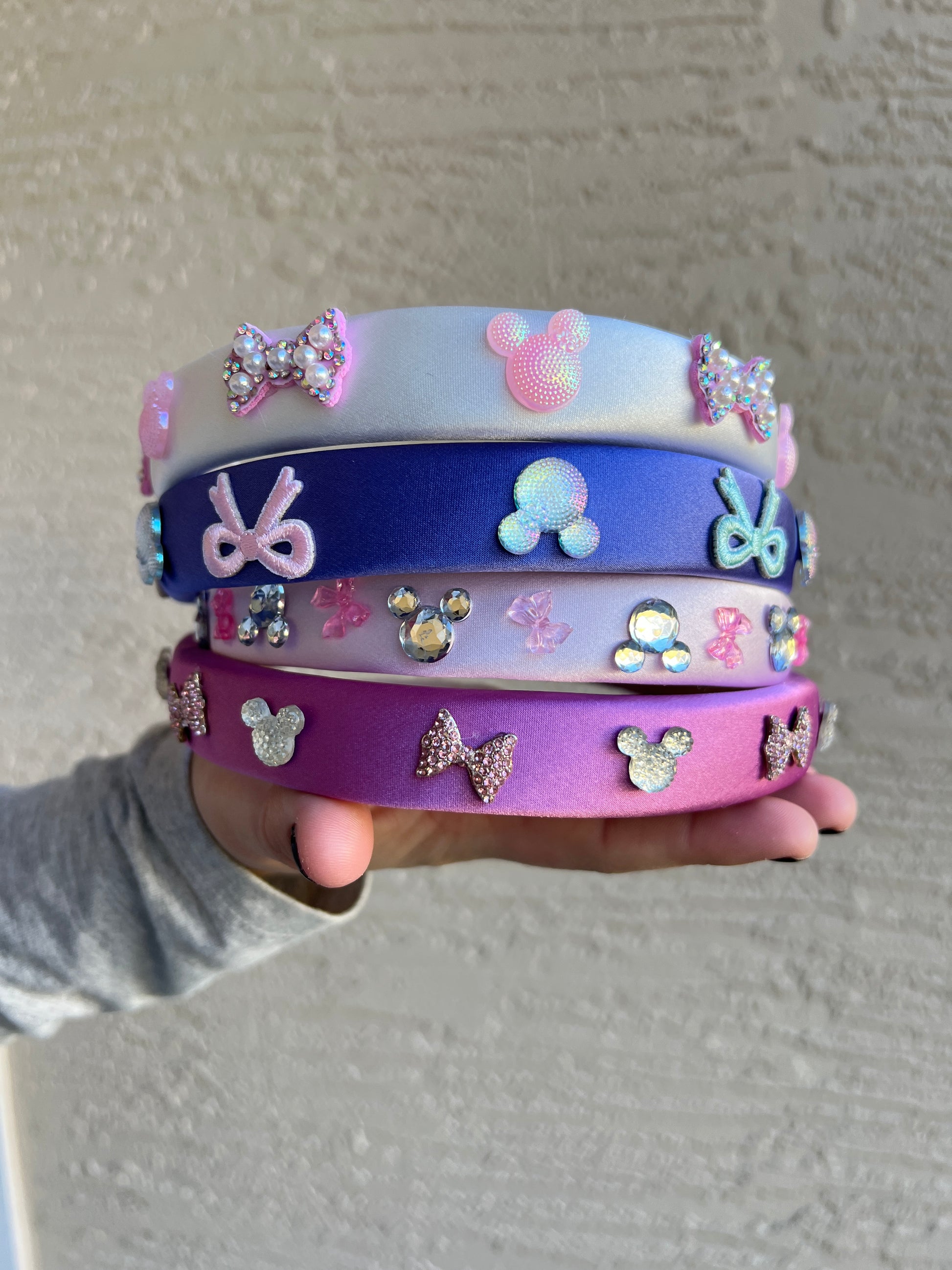 Choice of 5 designs. Gorgeous padded 3/4” wide covered in Mickey Embelishments.