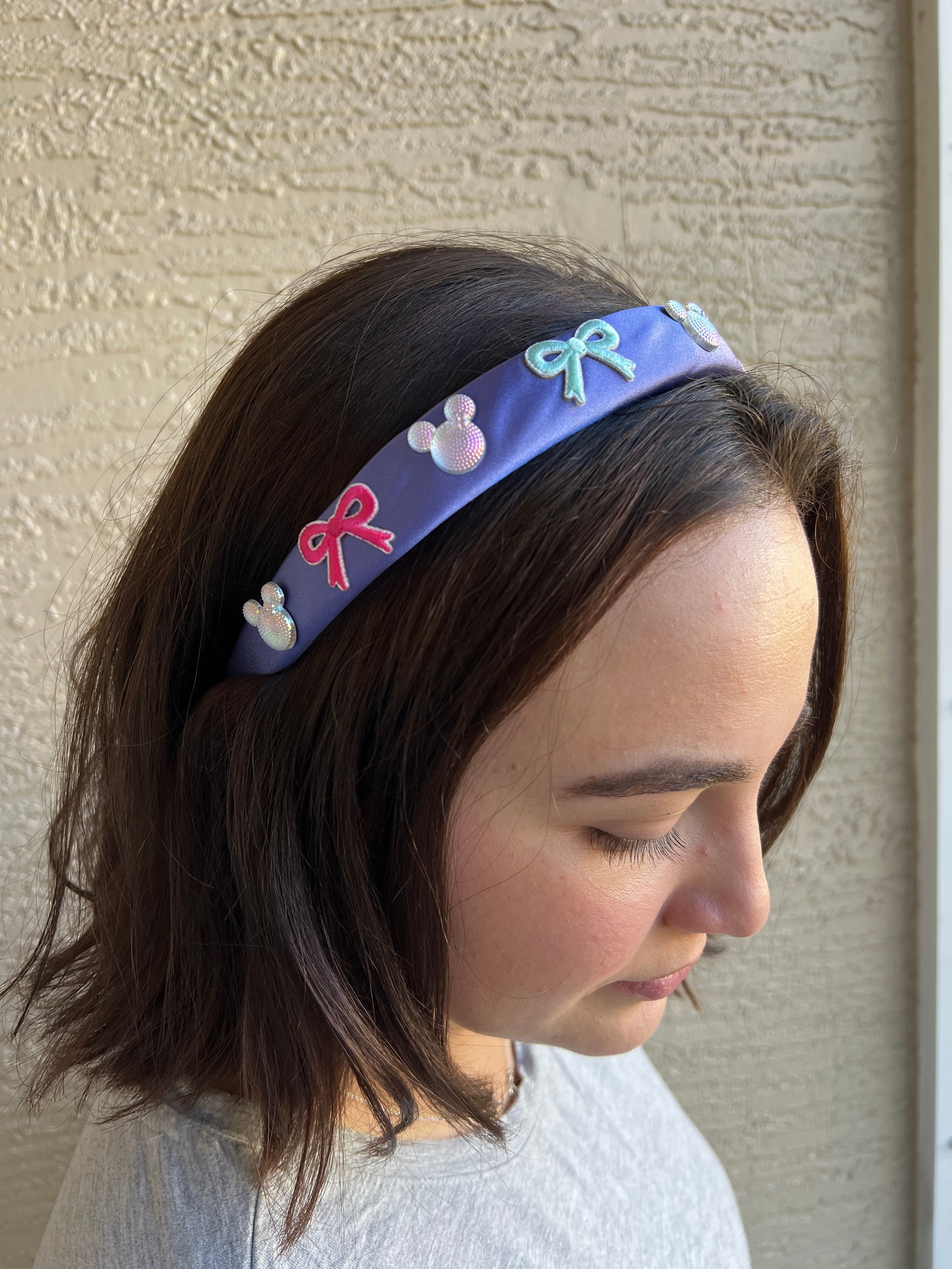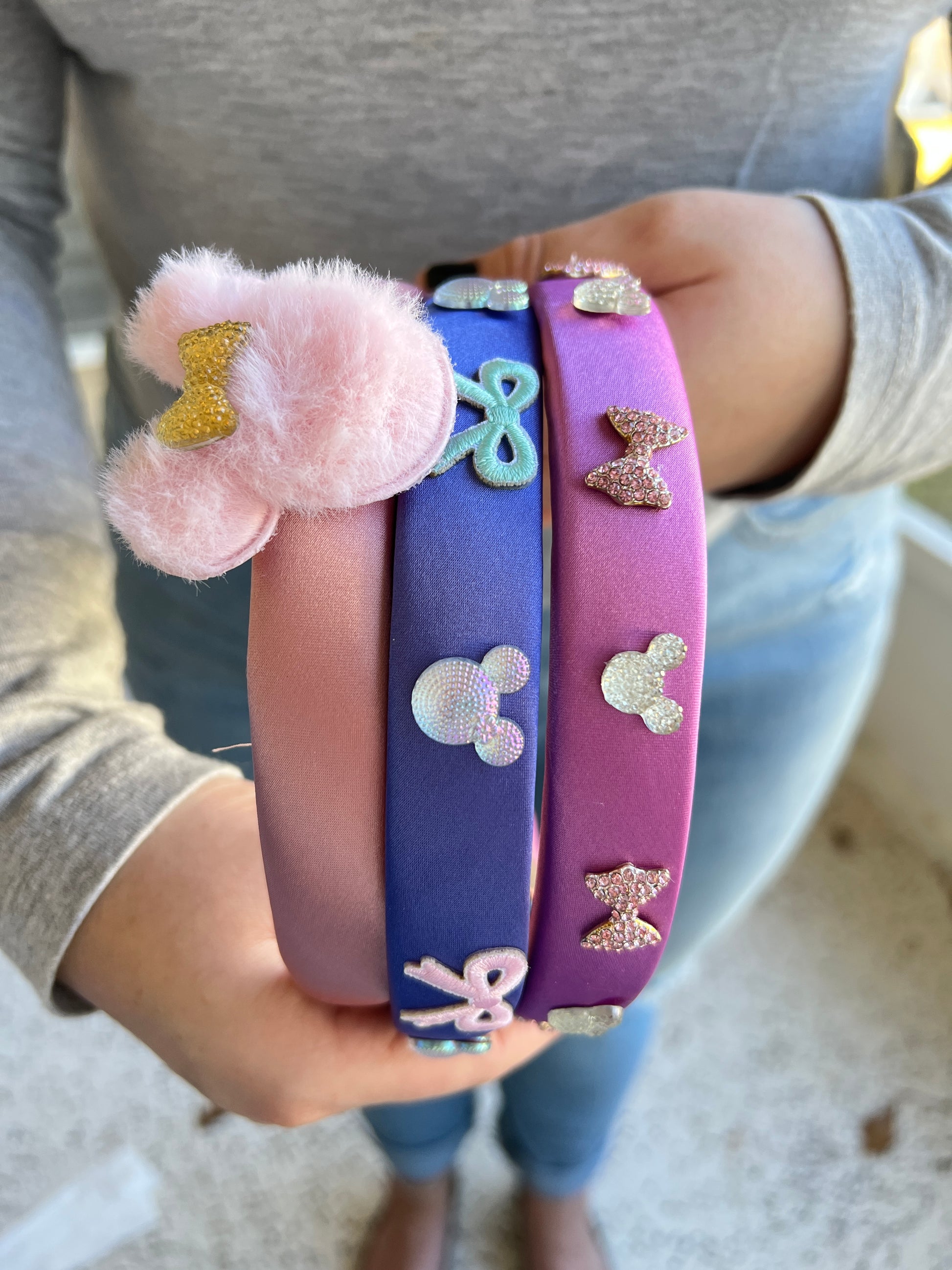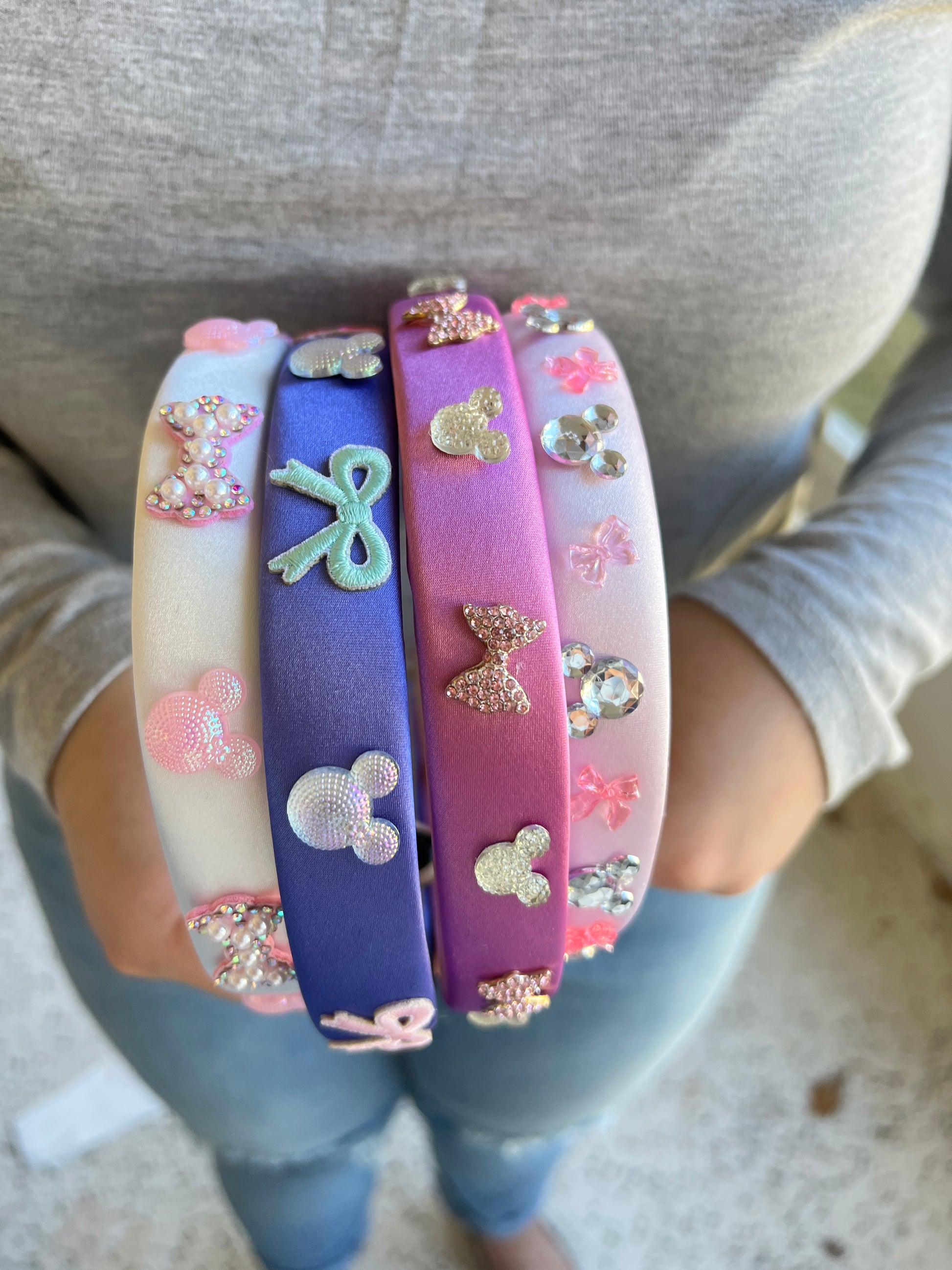 Choice of 5 designs. Gorgeous padded 3/4” wide covered in Mickey Embelishments.