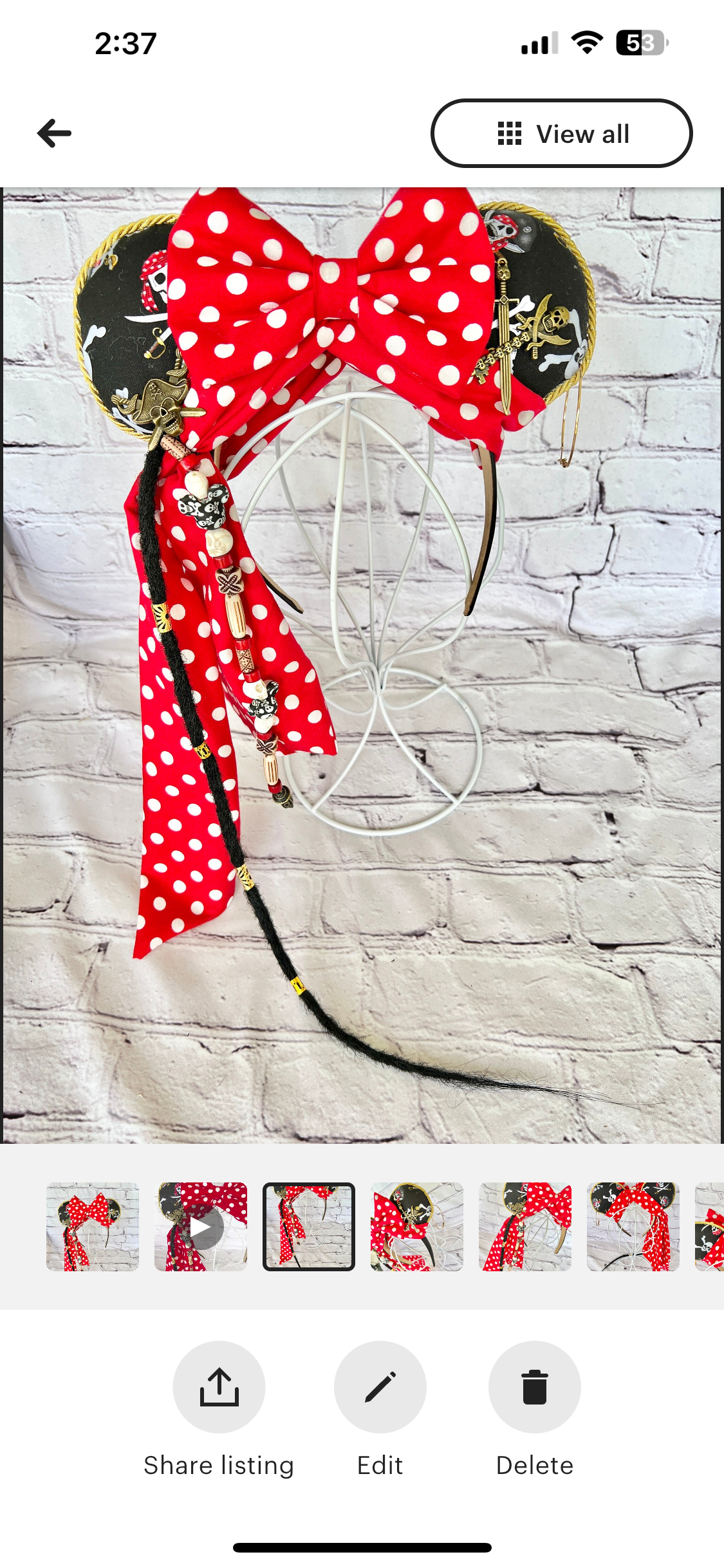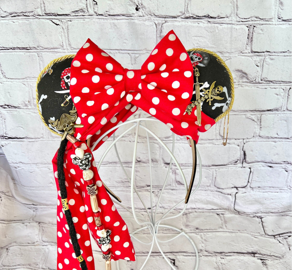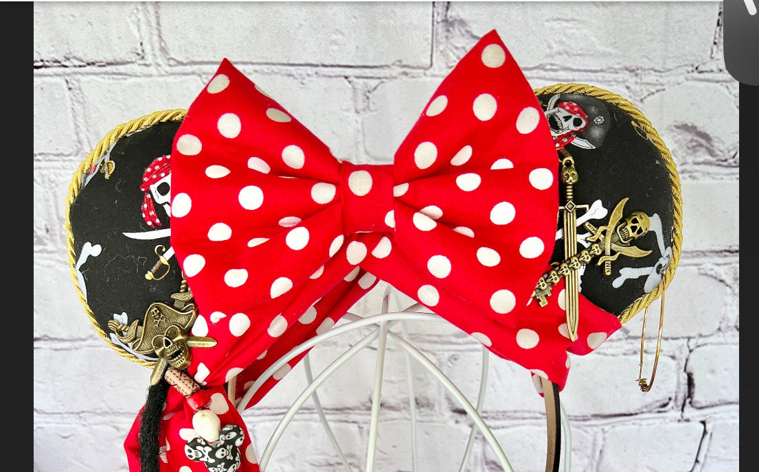 Disney cruise Pirate night!! Beautiful designed pirate ears with hair dangle and dreadlock with jewels