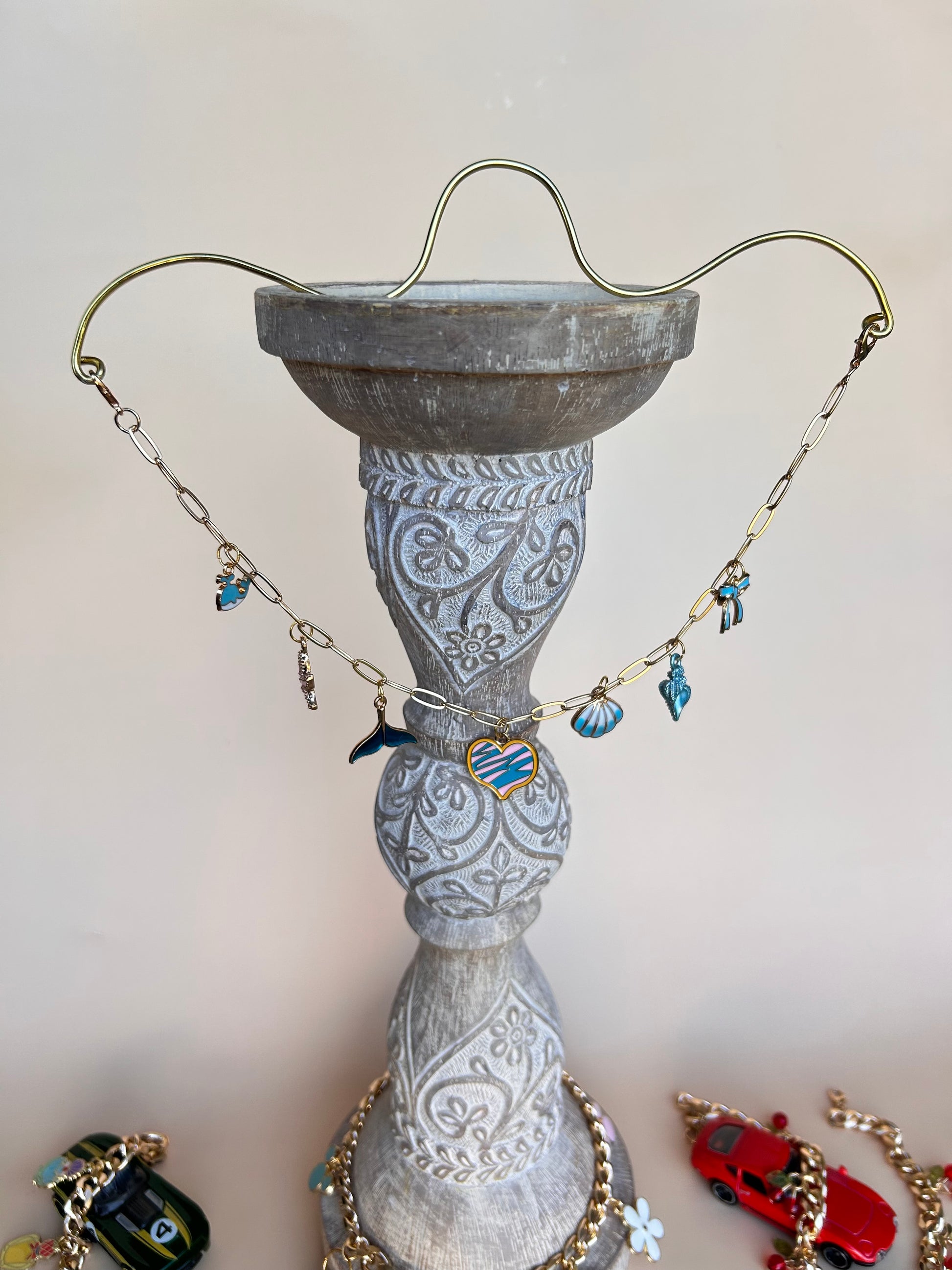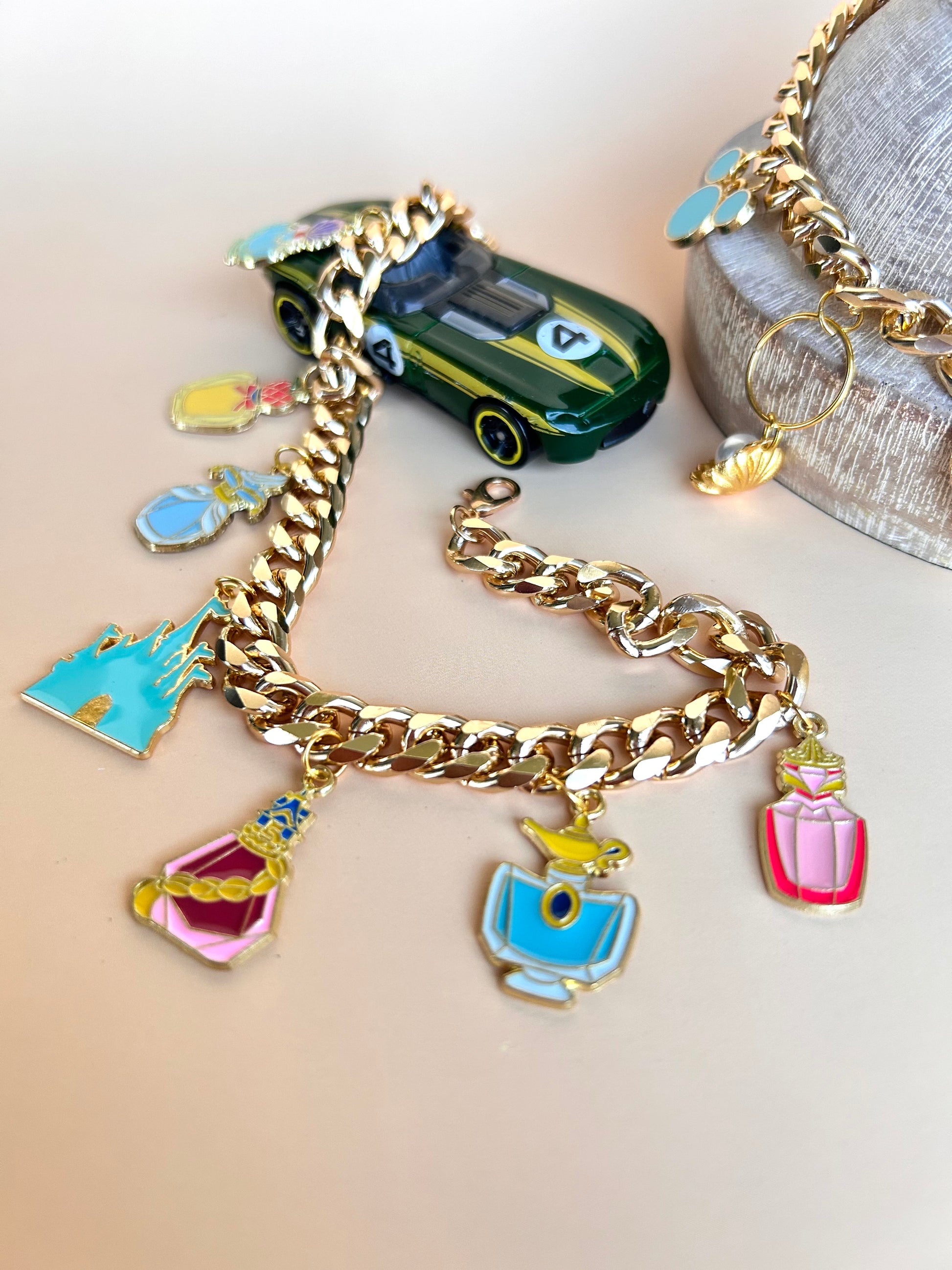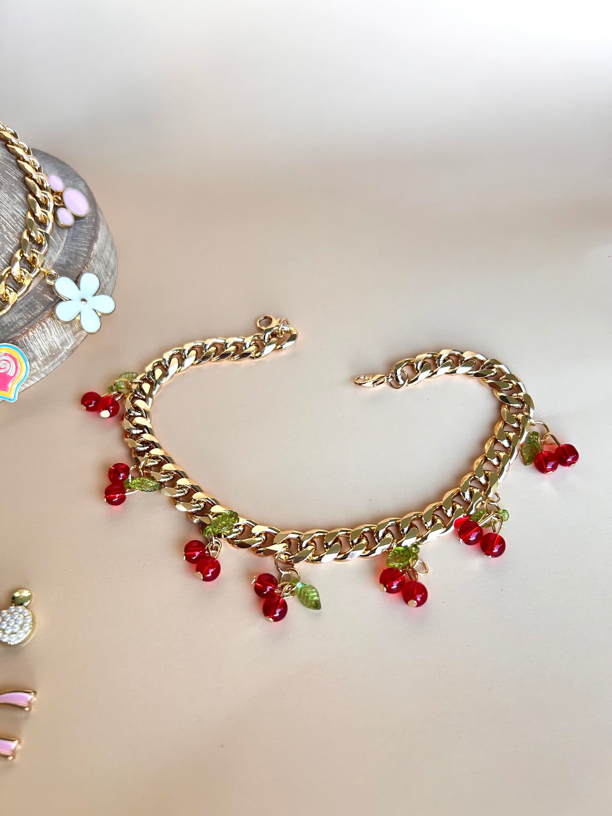 Spice up your vehicle with this gorgeous charm bracelet that goes over your review mirror. Miscellaneous charms on each one but if you know which specific charms you would like please leave me a note and I will make sure your review mirror charm is exactly what you want.